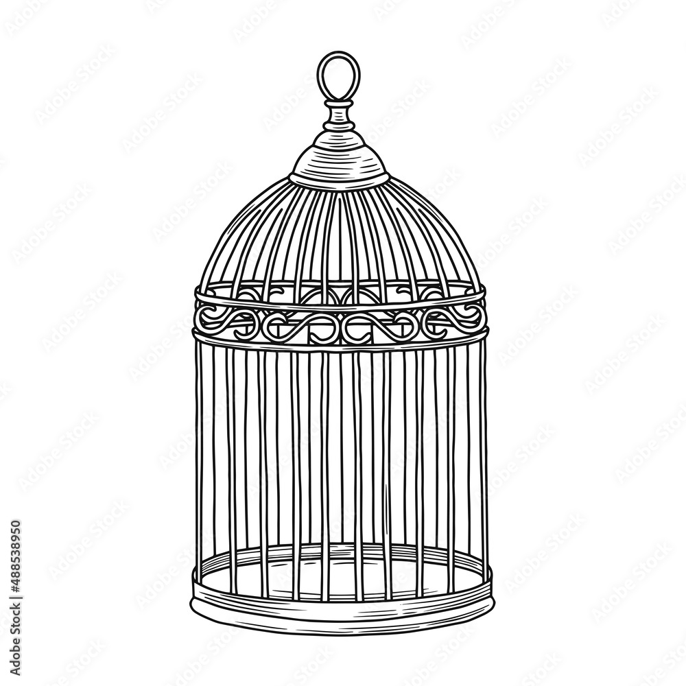 Sticker Hand drawn vintage bird cage illustration isolated on white background