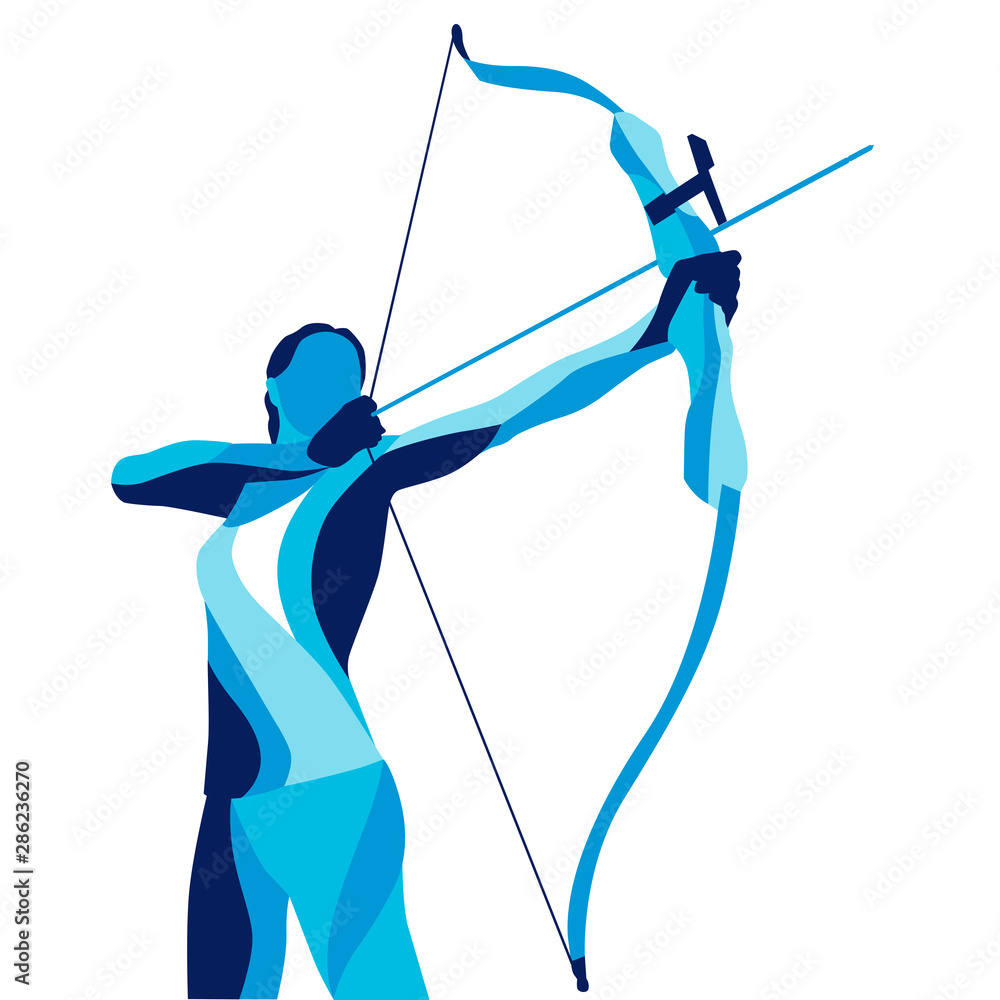 Foto Trendy stylized illustration movement, archer, sports archery, line vector silho