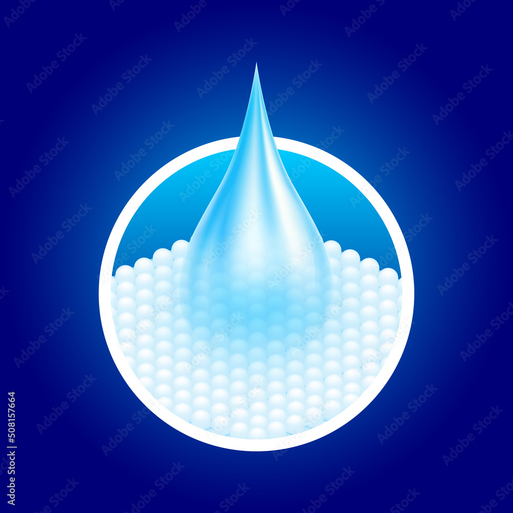 Foto Water droplets flow through the absorbent pad close up